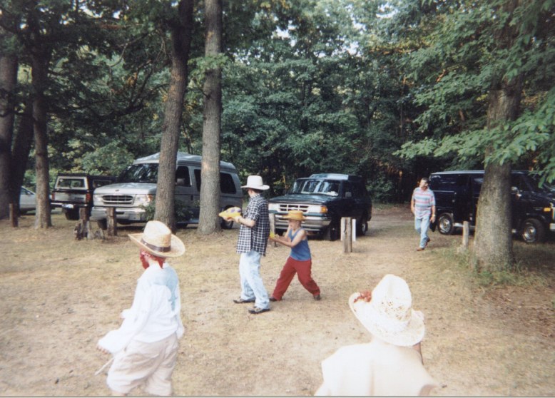 Robert and the boys having a watergun battle before the big party for the entire camp. Get 'em boys!